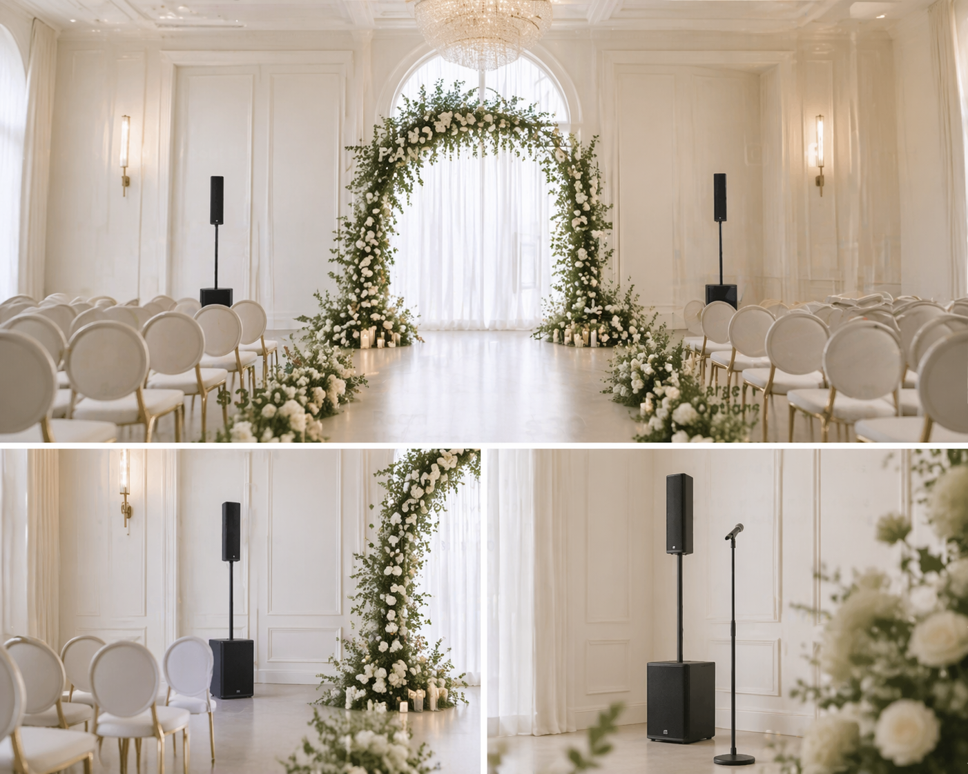 Designed for smaller gatherings where clarity and presence matter. Ideal for ceremonies, cocktail hours, and refined settings