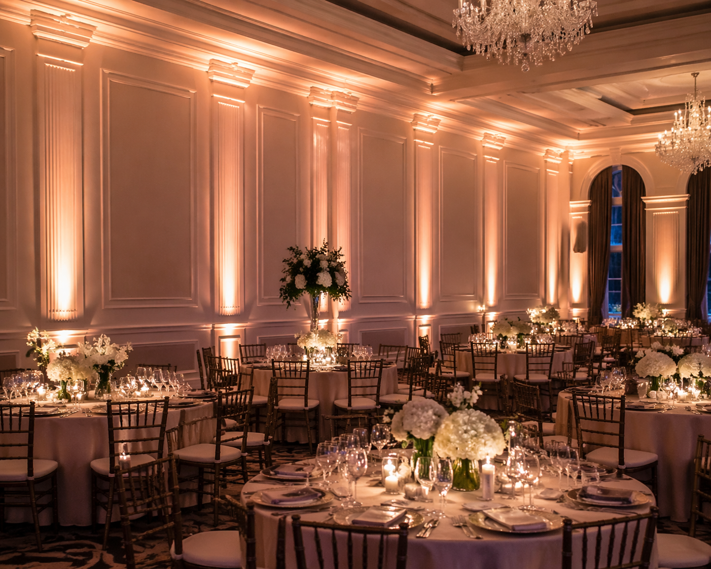 Transform your space with soft, immersive lighting tailored to your event’s color palette.